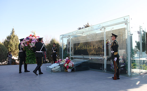 “死在戈壁灘、埋在青山頭”。26日上午,湖南省政協(xié)委員文化擁軍活動一行來到東風(fēng)革命烈士陵園,向革命先烈敬獻(xiàn)花籃。陵園里安葬著聶榮臻元帥和為我國航天科技事業(yè)獻(xiàn)身的700名烈士。張大方副主席等一行瞻仰了聶帥墓和革命紀(jì)念碑,對烈士們的奉獻(xiàn)精神表示由衷敬意。