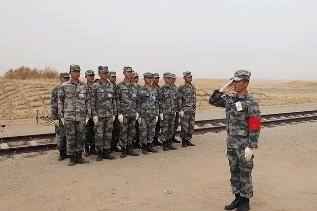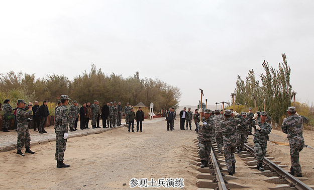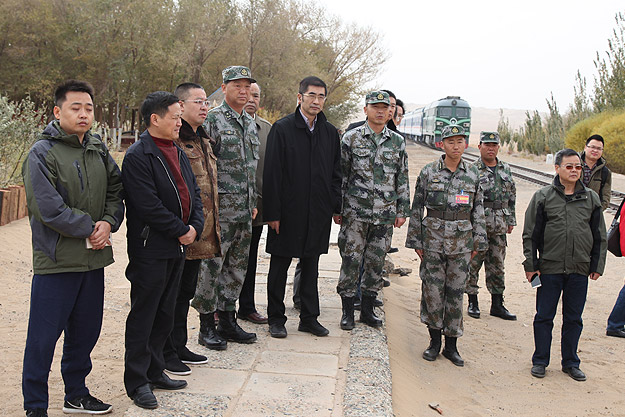 “狂風(fēng)可卷千堆雪,壯士能抵萬頃沙”。25日,湖南省政協(xié)委員文化擁軍活動一行搭乘軍用專列,近4小時車程后來到基地鐵路管理處的“鐵四連”進(jìn)行捐贈慰問活動。駐地在巴丹吉林沙漠邊緣的“鐵四連”是基地最偏遠(yuǎn)、最艱苦的連隊,為了防止風(fēng)沙埋道,保證線路安全暢通,風(fēng)沙越大越要在線路上堅守。