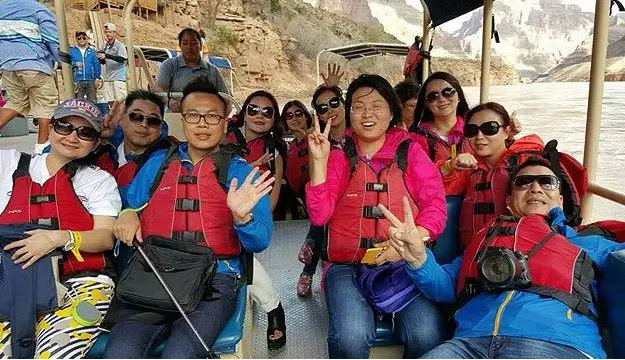 玩不但要盡興,還要心跳,綠之韻伙伴們乘坐直升飛機游覽,居高遠望,然后坐游船在科羅拉多峽谷水上游覽,大自然的雄偉壯觀令得所有伙伴們的胸襟抱負也更加擴展開來。