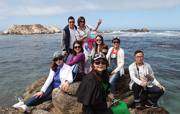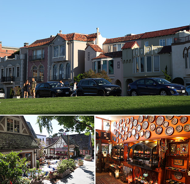 駕車游覽美麗的17英里海岸線,海水湛藍,巖石礁上海獅棲居,松鼠漫步,自然與人和諧共處。道路兩邊都是私人別墅和私人領地?;虿卦谏钐帯⒒蚓驮诼愤?。公路和海岸幾乎被豪門庭院占據(jù),不難想象圍墻里面住家門口又漂亮的海景,不難想象坐在別墅的陽臺上聽海濤拍岸的生活,是多么的充滿了詩情畫意。從車窗向外看去,白色的沙灘、突起的怪石散布于海邊,沿途有看不完的美麗海洋風光。浪漫風情的卡梅爾小鎮(zhèn),集各式典雅風格、氣息。整個小鎮(zhèn)建筑與大海渾然一體,保持著一種自然、傳統(tǒng)的歐美風貌。