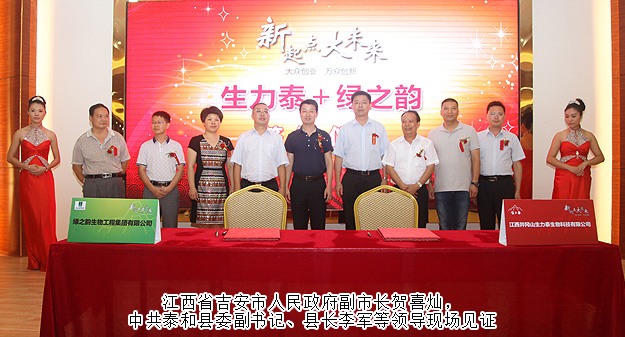 為更好地實現(xiàn)綠之韻大健康產(chǎn)業(yè)規(guī)劃,加速全球化大健康產(chǎn)業(yè)圈建設(shè)步伐,以更加優(yōu)質(zhì)、卓越的產(chǎn)品服務(wù)廣大消費者,2015年8月30日,綠之韻集團與江西井岡山生力泰生物科技有限公司簽署戰(zhàn)略合作協(xié)議,成立江西省綠韻生力靈芝生物科技有限公司,綠之韻靈芝種植生產(chǎn)基地正式落戶革命根據(jù)地井岡山。此舉,宣告綠之韻創(chuàng)建以中華五千年養(yǎng)生文化為基石的全球化大健康產(chǎn)業(yè)圈規(guī)劃再次邁出重要的一步。江西省吉安市人民政府副市長賀喜燦,中共泰和縣委副書記、縣長李軍,中共泰和縣委副書記劉云峰,中共泰和縣委常委、副縣長繆丹,中共泰和縣委常委李艷輝,泰和縣工商局局長胡列成,綠之韻集團董事長胡國安,綠之韻集團(中國區(qū))副總經(jīng)理(全球營銷中心)、國際商學(xué)院執(zhí)行院長孫心琥,井岡山生力泰公司董事長莫小毛,井岡山生力泰公司運營中心總裁郭大林等親臨簽約儀式現(xiàn)場,共同見證這一重要歷史性時刻。