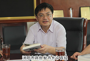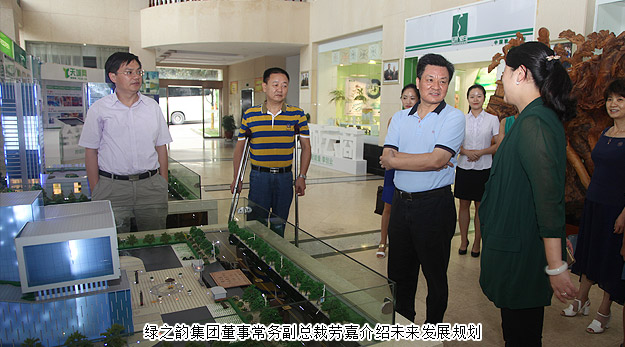2015年8月18日,瀏陽(yáng)市政協(xié)主席李家喜、瀏陽(yáng)市政協(xié)副主席郭榮華、瀏陽(yáng)市政協(xié)秘書長(zhǎng)許百經(jīng),瀏陽(yáng)市發(fā)展和改革局黨組副書記、副局長(zhǎng)龍春湘,瀏陽(yáng)市工業(yè)和信息化局副局長(zhǎng)林德懿,瀏陽(yáng)市工商聯(lián)副主席黃萍,瀏陽(yáng)經(jīng)濟(jì)開發(fā)區(qū)辦公室主任彭衛(wèi)新等一行蒞臨綠之韻集團(tuán)考察指導(dǎo)。湖南省政協(xié)委員、綠之韻集團(tuán)董事長(zhǎng)胡國(guó)安,瀏陽(yáng)市政協(xié)常委、綠之韻集團(tuán)董事常務(wù)副總裁勞嘉,綠之韻集團(tuán)黨總支部書記許達(dá)仲,綠之韻集團(tuán)辦公室主任馮紅等陪同考察。