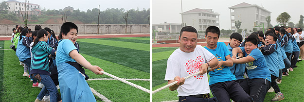 捐贈活動結(jié)束后,在胡國安董事長、勞嘉副總裁的親自帶領(lǐng)下,綠之韻的愛心志愿者及經(jīng)銷商們還與學(xué)校師生互動,進(jìn)行拔河比賽、乒乓球比賽,現(xiàn)場同學(xué)們熱情高漲,歡呼聲、加油聲此起彼伏。
