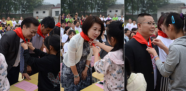 愛心助學儀式上,月山學校校長李勇翔致歡迎詞:“時隔一年時間,感謝綠之韻集團對我校及孩子們的關愛,感謝綠之韻的家人們依然心存愛心,記得月山太平中學的孩子們。學校也會不辜負大家的希望,好好教育好學生,培養(yǎng)出更多對社會有用有愛心的的棟梁之才?!彪S后,可愛的孩子們?yōu)槌鱿顒拥念I導、嘉賓以及綠之韻集團的愛心經(jīng)銷商和志愿者們系上鮮艷的紅領巾,借此表達他們的無限感激之情。