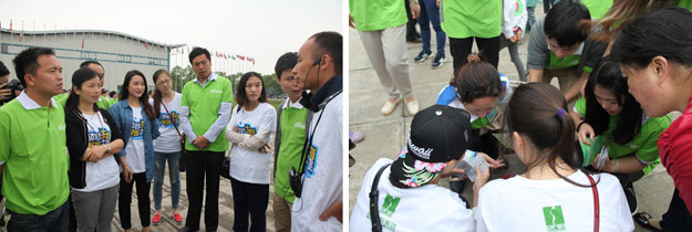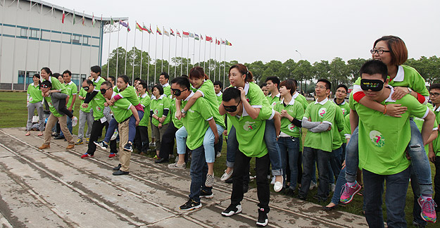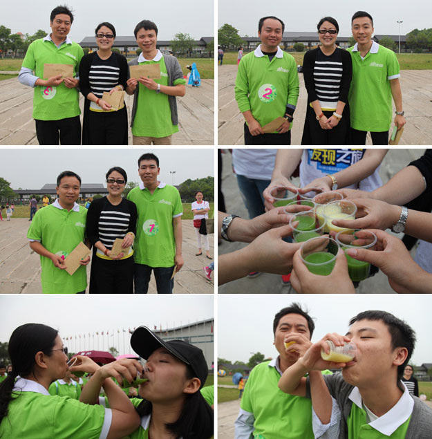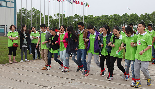 在千龍湖度假村的活動草坪上,活動組委會將所有參加活動的員工分成了六組,在六個小組間展開了別開生面、妙趣橫生的趣味競技活動。在綠之韻集團(tuán)董事長胡國安先生、董事常務(wù)副總裁勞嘉女士的親切指導(dǎo)下,在現(xiàn)場工作人員的精心組織和安排下,六個小組各推選出一個組長,并帶領(lǐng)所有組員充分參與“長龍越嶺”、小組接力、綁腿賽跑等團(tuán)隊協(xié)作拓展活動。
