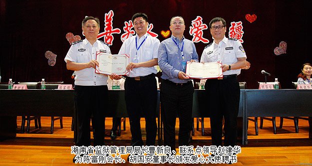 綠之韻關(guān)愛監(jiān)獄貧困母親,不僅在經(jīng)濟(jì)上給予支持,還隨同湖南省女子監(jiān)獄共同走訪湖南各地市服刑人員家庭,行程1700多公里,給這些貧困家庭里的老人、孩子送去愛的溫暖以及精神鼓勵(lì)?;顒?dòng)中,湖南省監(jiān)獄管理局副局長(zhǎng)曹新良、聯(lián)系點(diǎn)領(lǐng)導(dǎo)趙建華為陳富剛會(huì)長(zhǎng)、胡國安董事長(zhǎng)頒發(fā)愛心大使聘書。2013年,當(dāng)綠之韻關(guān)愛貧困母親行動(dòng)第一次走進(jìn)湖南省女子監(jiān)獄時(shí),胡國安董事長(zhǎng)就為100名特困服刑母親發(fā)放愛心救助金20萬元。今天,他又再次走進(jìn)女子監(jiān)獄為特困服刑母親進(jìn)行愛心捐助。