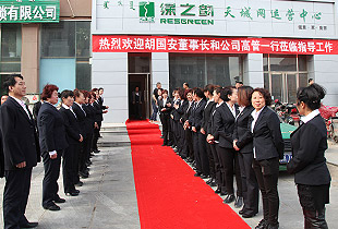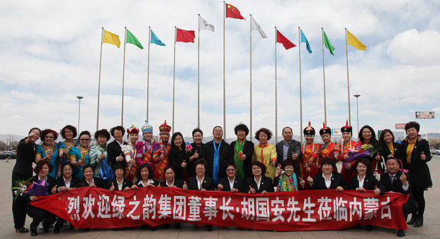 2015年4月9日,胡國安董事長借參加綠之韻內蒙古高峰論壇之機,親赴內蒙古一線市場考察情況,了解當?shù)厥袌鲞\營、專賣店建設等情況。綠之韻內蒙古地區(qū)優(yōu)秀經(jīng)銷商王連坤、郝建兵、張聞英、喬桂英等全程陪同。