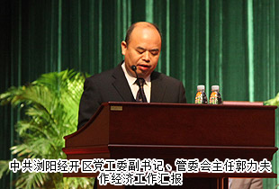 本次會議由中共開發(fā)區(qū)黨工委書記周岳云主持,黨工委副書記、管委會主任郭力夫作了“把握新常態(tài),實現(xiàn)新跨越,奮力躍上‘千億園區(qū)’新臺階”的講話。他首先回顧2014年經(jīng)濟工作,瀏陽經(jīng)開區(qū)克服宏觀經(jīng)濟形勢下行的影響,迎難而上,真抓實干、開拓創(chuàng)新,各項工作呈現(xiàn)出又好又快的發(fā)展局面,先后榮獲湖南省加速推進新型工業(yè)化一等獎、長沙市2014年度國家級園區(qū)績效考核第一名,綜合實力在全省109個園區(qū)排名中挺進3個位次躍入前六強。他指出,瀏陽經(jīng)開區(qū)2015年經(jīng)濟總的指導(dǎo)思想是:以“四個前面”的治國方略為方針,深入貫徹落實中共長沙市委、瀏陽市委經(jīng)濟工作會議精神,把握新常態(tài),力求新作為,突出項目拉動、驅(qū)動創(chuàng)新、改革推動、管理帶動,加快實現(xiàn)長沙、瀏陽的雙向融城,以項目建設(shè)推動產(chǎn)業(yè)結(jié)構(gòu)調(diào)整、以產(chǎn)業(yè)結(jié)構(gòu)調(diào)整推動園區(qū)快速發(fā)展,努力成為長沙高科技產(chǎn)業(yè)的重要增長極、瀏陽經(jīng)濟發(fā)展的主陣地,奮力邁上“千億園區(qū)”新臺階。