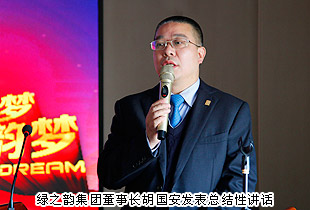 最后,綠之韻集團胡國安董事長在全場熱烈的掌聲中走上講臺發(fā)表了重要講話。他首先向所有綠之韻員工一年來的辛勤付出表示誠摯的感謝。他指出,創(chuàng)立之初,綠之韻就將打造“最具幸福感、最受尊敬企業(yè)”作為行動目標(biāo),竭力讓所有員工、經(jīng)銷商和企業(yè)不斷獲得成長,不斷取得成功,從而在綠之韻通往“百年企業(yè)、世界名牌”的恢弘征程中逐步實現(xiàn)員工夢、經(jīng)銷商夢和綠之韻夢,最終夢想成真,共享精彩。他強調(diào),企業(yè)目標(biāo)就是實現(xiàn)其宗旨所要達到的預(yù)期成果,沒有目標(biāo)的企業(yè)是沒有希望的企業(yè)。企業(yè)目標(biāo)就是企業(yè)發(fā)展的終極方向,是指引企業(yè)航向的燈塔,是激勵企業(yè)員工不斷前行的精神動力。接下來的2015年乃至未來3年,綠之韻將進一步在企業(yè)文化、科學(xué)管理、人才培養(yǎng)、教育培訓(xùn)、產(chǎn)品研發(fā)等多個方面下大力氣、做足功夫。他希望每一位綠之韻人明確目標(biāo)、堅定信心、對照承諾、團結(jié)協(xié)作,充分發(fā)揮出自己的聰明才智,找準位置,努力工作,為實現(xiàn)自己的夢想,家族的榮耀和企業(yè)的輝煌而不懈奮斗!