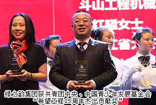 2014年11月25日,共青團(tuán)中央、中國青少年發(fā)展基金會在北京舉行“希望工程25年暨公益新項(xiàng)目發(fā)布”活動。共青團(tuán)中央書記處常務(wù)書記賀軍科,中國青基會副理事長兼秘書長涂猛等領(lǐng)導(dǎo),綠之韻集團(tuán)、茅臺集團(tuán)、可口可樂、中國平安、寶潔中國、海爾集團(tuán)、梅賽德斯—奔馳等179家捐贈企業(yè)負(fù)責(zé)人,以及長期支持希望工程發(fā)展的海內(nèi)外各界捐款人和希望工程受益人代表出席大會。會上,因在希望工程事業(yè)中做出的重大貢獻(xiàn),綠之韻集團(tuán)獲共青團(tuán)中央、中國青少年發(fā)展基金會“希望工程25周年杰出貢獻(xiàn)獎(jiǎng)”,胡國安董事長受邀出席頒獎(jiǎng)禮。本次活動由中央電視臺著名主持人劉芳菲傾情主持。