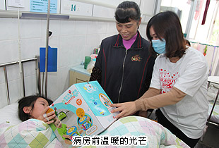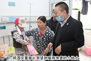 “我打心底的佩服孩子們,佩服他們頑強(qiáng)的生命意志,在他們的眼中,就算是黑夜也同樣可以看見(jiàn)彩虹,這不是奇跡,一種對(duì)生命的信念。這里是一個(gè)大家庭,和諧、溫馨、充滿愛(ài),正是這種愛(ài)讓家長(zhǎng)和孩子們充滿信心與病魔作斗爭(zhēng),并一次又一次的取得勝利,培養(yǎng)出這些勇敢的小戰(zhàn)士!”胡國(guó)安董事長(zhǎng)輕輕抱起一名3歲多的白血病患兒,一席話,深深感染著周?chē)拿恳粋€(gè)人。