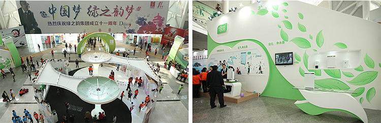 進(jìn)入湖南國際會展中心嘉年華活動(dòng)入口處,印入眼簾的氣勢恢宏的企業(yè)文化歷程立體展板。與時(shí)代同行,與祖國同行,該展示區(qū)域從水的精神、家文化、企業(yè)經(jīng)營宗旨、產(chǎn)品理念、核心價(jià)值觀、歷史使命、愿景規(guī)劃等多個(gè)方面直觀、形象和生動(dòng)地細(xì)數(shù)了綠之韻十一年文化傳承、輝煌發(fā)展之路。