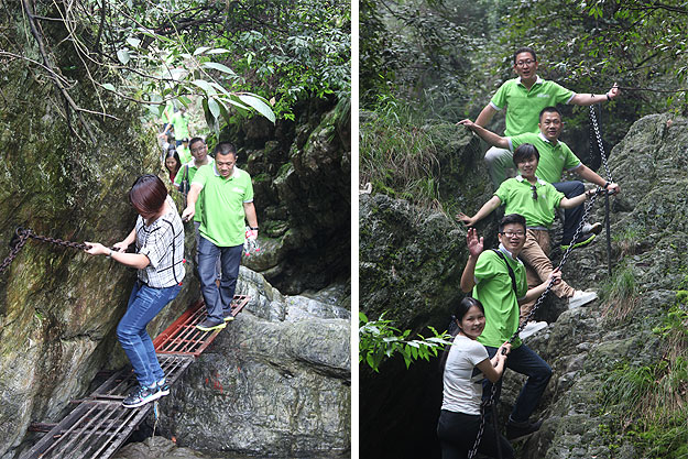 悠悠蒼穹,思接千載。在安化縣的崇山峻嶺和山澗溪流之間,綿延著一條神秘的茶馬古道。千百年來(lái),無(wú)數(shù)的馬幫在這條道路上默默行走,悠遠(yuǎn)的馬鈴聲,回蕩在山谷、急流和村寨上空,開辟了一條通往域外的經(jīng)貿(mào)之路,形成了世界上地勢(shì)最高、山路最險(xiǎn)、距離最遙遠(yuǎn)的茶馬文明古道。在關(guān)山峽谷層巖疊翠,怪石嶙峋的道路上行走,綠之韻伙伴們盡情體驗(yàn)了一番攀巖探險(xiǎn)的刺激和樂(lè)趣。正是因?yàn)楣诺赖钠D險(xiǎn)超乎尋常,沿途壯麗的自然景觀也不斷地激發(fā)人潛在的勇氣、力量和忍耐?!安桉R古道馬幫所經(jīng)歷的冒險(xiǎn)性是人所共稱道的,他們身上最為突出的特征就是他們的冒險(xiǎn)精神。為了生存,為了貿(mào)易獲利,馬幫們幾乎是以自己的生命去冒險(xiǎn)。這種冒險(xiǎn)體現(xiàn)在三個(gè)方面:一是生意上的冒險(xiǎn),二是面對(duì)嚴(yán)峻的大自然的冒險(xiǎn),三是土匪強(qiáng)盜的威脅。馬幫的這種冒險(xiǎn)精神,值得我們每一個(gè)綠之韻人深思和學(xué)習(xí)!”綠之韻總裁助理方彥雄在尋蹤茶馬古道途中感慨萬(wàn)千。