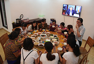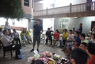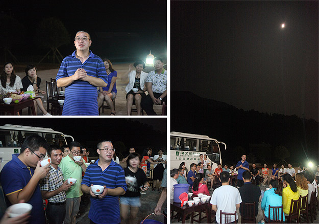 中秋圓月當(dāng)空照,綠韻山莊話家常。吃完晚餐,大家圍坐在寬敞的前坪,一場(chǎng)中秋月圓之夜的茶話會(huì)激情上演。大家暢所欲言地交流,伙伴們精心編排的“小蘋果”激情舞動(dòng),氛圍無(wú)比融洽。中醫(yī)養(yǎng)生專家、湖南中醫(yī)藥大學(xué)李定文教授為大家?guī)?lái)了“茶與人生”、“茶與健康”的精彩講演;公司常年法律顧問(wèn)尹湘南律師根據(jù)自己兩天來(lái)的親身體驗(yàn),暢談了心中所想、所思、所悟。隨后,大家開始玩起了“擊鼓傳花”的游戲,誰(shuí)接到鼓聲停止的那一棒就即興表演節(jié)目,有的清唱山歌,有點(diǎn)翩翩起舞,有的講起笑話,有的表演小品,其樂(lè)融融,親如一家。茶話會(huì)上,胡國(guó)安董事長(zhǎng)深情滿懷地說(shuō):“我家門前的小九溪,從著名的雪峰山深處走來(lái),拐個(gè)彎又不知疲倦地往外面的世界奔去。沿著這條小溪,我走過(guò)了童年、少年,明白了在群山之間蜿蜒奔流的小九溪的夢(mèng)想,明白了小九溪晝夜不舍奔向浩瀚汪洋的意義。我想,一個(gè)人、一支團(tuán)隊(duì)或者一個(gè)企業(yè),如果能夠像小九溪一樣,堅(jiān)韌執(zhí)著于夢(mèng)想,不畏萬(wàn)難咬目標(biāo),何愁不能成長(zhǎng)、發(fā)展,乃至基業(yè)長(zhǎng)青呢?這一次邀請(qǐng)優(yōu)秀黨員、員工來(lái)到我的家鄉(xiāng)做客,就是想讓大家深刻領(lǐng)悟‘水的精神’、‘家文化’的根本,切身明白‘綠之韻水的精神和家文化’存在于諸位人生、綠之韻發(fā)展中的重要意義?!?/span>