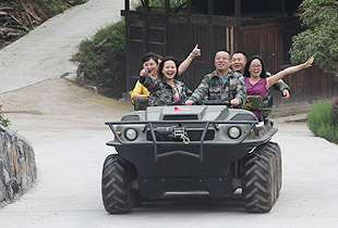 雪峰山因山頂長(zhǎng)年積雪而得名,是為資江與沅水的分水嶺。地理位置獨(dú)特優(yōu)越,集納天地之靈氣,廣沐日月之精華,可謂山水形勝,物華天寶。6日清晨,在胡國(guó)安董事長(zhǎng)的帶領(lǐng)下,大家來(lái)到了位于雪峰山東麓下的農(nóng)家菜園,這里梯田縱橫、稻浪隨風(fēng)起舞、長(zhǎng)勢(shì)喜人,這里野生、正宗、天然、綠色、環(huán)保、自然的果蔬,林林總總、生機(jī)盎然、滿園飄香,惹人喜愛(ài);午后,胡國(guó)安董事長(zhǎng)饒有興致地親自駕駛水陸兩用軍車,技藝嫻熟地載著伙伴們?cè)诓⒉皇謱挸ǖ泥l(xiāng)間水泥路上旋轉(zhuǎn)漂移,風(fēng)馳電掣。幾位膽大的伙伴們,登車一試身手,那種肆意奔騰、塵土飛揚(yáng)的暢快感受令人大呼過(guò)癮。晚餐將近,周圍鄰里看著村里來(lái)了客人,紛紛從家里送來(lái)自種的土菜、瓜果和零食,大家完全沒(méi)有距離感,那份親近猶如走親戚串門,讓每一個(gè)人心里都溫暖異常。