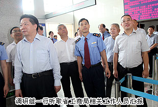 隨后,調(diào)研組一行來(lái)到省工商局登記注冊(cè)大廳,湖南省政協(xié)主席陳求發(fā)、湖南省人民政府副省長(zhǎng)盛茂林詳細(xì)了工商登記流程、登記事項(xiàng)等工作情況。作為湖南省工商行政管理局(首批聘用)民主監(jiān)督員,胡國(guó)安董事長(zhǎng)與前來(lái)登記注冊(cè)的企業(yè)人員親切交流,仔細(xì)詢問(wèn)了現(xiàn)場(chǎng)辦理登記的企業(yè)人員對(duì)窗口辦事效率滿意度的評(píng)價(jià)。湖南省政協(xié)主席陳求發(fā)看到大廳內(nèi)的宣傳墻,對(duì)省工商局深入開(kāi)展黨的群眾路線教育實(shí)踐活動(dòng),給予了充分肯定。湖南省工商局黨組書記、局長(zhǎng)李金冬表示,全省工商系統(tǒng)將以此次調(diào)研為契機(jī),總結(jié)經(jīng)驗(yàn)、查找不足,繼續(xù)大力開(kāi)展黨的群眾路線教育實(shí)踐系列活動(dòng),真正讓企業(yè)受益、讓工商有為、讓社會(huì)滿意。