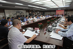 據(jù)了解,湖南省優(yōu)秀政協(xié)委員、綠之韻集團(tuán)董事長(zhǎng)胡國(guó)安于2014年5月7日正式當(dāng)選省政協(xié)派駐省工商行政管理局(首批聘用)民主監(jiān)督員后,先后參與“應(yīng)邀參加派駐單位的有關(guān)會(huì)議和活動(dòng),對(duì)派駐單位相關(guān)工作開(kāi)展視察、調(diào)研和走訪,收集、了解和反映社情民意,監(jiān)督省政協(xié)建議案、提案的辦理落實(shí)情況”等一系列活動(dòng),為湖南省工商局各項(xiàng)工作的推進(jìn)提出了合理化意見(jiàn)和建議。調(diào)研期間,胡國(guó)安董事長(zhǎng)在與湖南省政協(xié)主席陳求發(fā)、湖南省人民政府副省長(zhǎng)盛茂林交談時(shí)表示,今后將不斷加強(qiáng)自身學(xué)習(xí),多聯(lián)系、多交流、多溝通,遵循“懂行、明責(zé)、知情”六字訣,努力做組織放心、派駐單位歡迎、人民群眾滿意的監(jiān)督員。