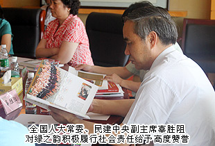 全國人大常委、全國人大財經(jīng)委員會副主任、民建中央副主席、著名經(jīng)濟學家辜勝阻認真聽取并記錄了胡國安董事長的匯報內(nèi)容,對綠之韻集團的經(jīng)營理念、產(chǎn)品研發(fā)、非公黨建和黨的群眾路線教育實踐活動成果給予了充分認可和高度贊譽;對綠之韻集團在經(jīng)濟發(fā)展大環(huán)境下積極轉(zhuǎn)型;對綠之韻情系民生、心憂天下,產(chǎn)業(yè)扶貧,教育扶貧以及每年度向社會發(fā)布一本《企業(yè)社會責任報告》的成功做法表示出濃厚興趣和高度贊譽。