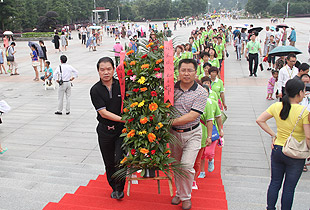 第二站是毛澤東銅像廣場。毛澤東銅像在廣場的正中間巍然矗立,身著中山裝,面朝東南方,胸前掛著“主席”證,手里握著一卷文稿,面帶微微笑意,目光炯炯有神,正視這正前方。銅像的大理石基座正面,鐫刻著“毛澤東同志”五個貼金大字。廣場上人山人海,來自祖國各地、五湖四海的人們不約而同匯聚在偉人腳下。各色花籃,虔誠鞠躬,深情仰望,每個人都自發(fā)自覺的用自己的方式懷念著這位偉大的無產(chǎn)階級革命家,壯志成城的政治家,永垂不朽的理論家。 全球營銷中心(中國區(qū))常務(wù)副總經(jīng)理諶獻(xiàn)軍、國際商學(xué)院執(zhí)行院長孫心琥、帶領(lǐng)著營銷精英們整齊有序排好隊列,懷著無比敬仰與懷念,給毛澤東銅像敬獻(xiàn)了美麗的花籃,并恭敬地給毛澤東銅像三鞠躬,然后緩緩地從左往右圍繞毛澤東銅像走了一周,以表達(dá)我們對一代偉人的深深摯情。