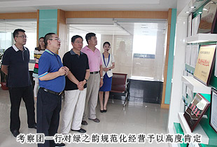 韓杰總隊(duì)長(zhǎng)一行首先參觀了綠之韻產(chǎn)品形象展廳,了解“以傳承中華五千年中醫(yī)藥養(yǎng)生文化”為使命的綠之韻中醫(yī)藥文化淵源和脈絡(luò)?!熬G色、天然、環(huán)保、健康、養(yǎng)生”的產(chǎn)品研發(fā)理念,以產(chǎn)、學(xué)、研結(jié)合為模式組建的產(chǎn)品科研團(tuán)隊(duì)都受到了韓杰總隊(duì)長(zhǎng)的充分肯定?!盀榱舜_保產(chǎn)品的品質(zhì),我們希望能夠更為全面的控制產(chǎn)品生物鏈上的所有環(huán)節(jié),包括原料、研發(fā)、生產(chǎn)和銷售,以打造綠之韻‘全產(chǎn)業(yè)鏈條’的產(chǎn)業(yè)結(jié)構(gòu)。我們擁有五大生產(chǎn)基地,其中益陽(yáng)萬(wàn)畝中藥材種植基地,為我們的保健食品提供了優(yōu)質(zhì)的產(chǎn)品原料,而‘綠之韻’進(jìn)一步督促我們注重產(chǎn)品品質(zhì),因此,綠之韻先后與南京大學(xué)、湖南中醫(yī)藥大學(xué)、湖南農(nóng)業(yè)大學(xué)、南方醫(yī)科大學(xué)等科研機(jī)構(gòu)、院校展開戰(zhàn)略合作,共同服務(wù)于人類健康,全力打造‘產(chǎn)學(xué)研’成功合作典范”,綠之韻集團(tuán)董事長(zhǎng)胡國(guó)安向考察團(tuán)一行匯報(bào)。