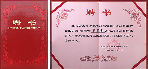 此次湖南省政協(xié)委派民主監(jiān)督小組試點工作,采取各民主黨派、工商聯(lián)推薦,省政協(xié)辦公廳和專委會考察相結(jié)合的辦法,經(jīng)過層層篩選、嚴格選拔出了24名省優(yōu)秀政協(xié)委員擔任委派民主監(jiān)督員,將監(jiān)督派駐單位依法行政、公正司法、政務公開、司法公開的情況,提出意見和建議,對省政協(xié)建議案、提案辦理落實情況進行了解和監(jiān)督。此次民主監(jiān)督員分成四組分別對省高級人民法院、省人民檢察院、省工商行政管理局、省食品藥品監(jiān)督局進行監(jiān)督。此次,湖南省優(yōu)秀政協(xié)委員、綠之韻集團董事長胡國安當選省政協(xié)派駐省工商行政管理局(首批聘用)民主監(jiān)督員后,將先后參與“應邀參加派駐單位的有關會議和活動,對派駐單位相關工作開展視察、調(diào)研和走訪,收集、了解和反映社情民意,監(jiān)督省政協(xié)建議案、提案的辦理落實情況”等一系列活動,撰寫出監(jiān)督報告,提出合理化意見和建議。