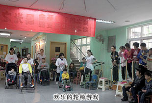 接著,志愿者們還和學(xué)生一起進(jìn)行了輪椅游戲,將志愿者和孩子們分成四組,設(shè)定兩個跑道,在一句“預(yù)備,起!”的喊聲中,游戲開始,激烈的角逐,讓孩子們紛紛大呼加油,鼓舞的歡聲,引發(fā)了全場的共鳴。