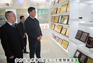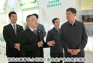 考察領(lǐng)導(dǎo)小組一行參觀了綠之韻集團(tuán)總部基地及產(chǎn)品展示廳,“綠色、天然、環(huán)保、健康、養(yǎng)生”的產(chǎn)品研發(fā)理念,以產(chǎn)、學(xué)、研結(jié)合為模式組建的產(chǎn)品科研團(tuán)隊(duì)都受到了安七一主席的充分肯定?!盀榱舜_保產(chǎn)品的品質(zhì),我們希望能夠更為全面的控制產(chǎn)品生物鏈上的所有環(huán)節(jié),包括原料、研發(fā)、生產(chǎn)和銷售,以打造綠之韻‘全產(chǎn)業(yè)鏈條’的產(chǎn)業(yè)結(jié)構(gòu)。先后與南京大學(xué)、湖南農(nóng)業(yè)大學(xué)、湖南中醫(yī)藥大學(xué)等科研機(jī)構(gòu)、院校展開戰(zhàn)略合作,全力打造‘產(chǎn)學(xué)研’成功合作典范。目前‘綠之韻’已被認(rèn)定為高新技術(shù)企業(yè),我們擁有五大生產(chǎn)基地,其中益陽(yáng)萬畝中藥材種植基地,為我們的保健食品提供了優(yōu)質(zhì)的產(chǎn)品原料”,綠之韻集團(tuán)董事常務(wù)副總裁勞嘉向考察團(tuán)一行匯報(bào)。