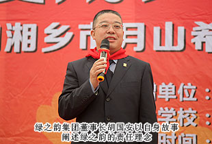 綠之韻集團董事長胡國安深情地說:“我是從山村走出來的孩子,我深切地知道孩子們渴望學習的心情。我從小就希望能夠憑自己的力量,幫助別人。如今,綠之韻集團不僅承擔著社會責任,更培養(yǎng)了一大批有能力幫貧扶困的經(jīng)銷商愛心志愿者。企業(yè)做大了就是屬于社會,屬于國家的,“關(guān)愛生命,回報社會”是綠之韻的使命,綠之韻湘鄉(xiāng)市月山鎮(zhèn)希望學校已經(jīng)是綠之韻捐贈的第九所希望小學,捐贈38所綠之韻希望學校是全體綠之韻人心中的夙愿。我沒有別的期望,就想以實際行動,以自身點點滴滴的實踐,帶動更多的中國優(yōu)秀企業(yè)一起參與承擔社會責任,共同推動社會責任發(fā)展。希望孩子們好好學習,有一技之長,將來為祖國作出更大的貢獻?!?br/>