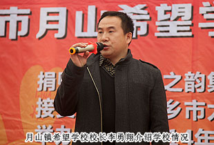 “讓貧困孩子上學,讓留守孩子有愛,讓農(nóng)民工子女找到家的感覺,讓愛在這里延續(xù),讓希望在這里升騰”,這是月山鎮(zhèn)希望學校校長李勇翔的辦學目標。在捐贈儀式現(xiàn)場,李校長的講話稿里提到,“近幾年隨著月山鎮(zhèn)外出打工的農(nóng)民日益增多,學生構(gòu)成也發(fā)生了巨大變化。學校為了幫助這些常年在外打工的家長解除后顧之憂,積極接收其子女入學。這些留守的孩子們是如此可愛,看著他們懂事樂觀的樣子,又很心疼。我感謝綠之韻的每一位愛心經(jīng)銷商,幫助學校建設(shè),關(guān)愛孩子成長?!?br/>