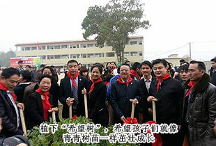 揭牌儀式結(jié)束后,胡國安董事長與綠之韻愛心經(jīng)銷商在李勇翔校長的帶領(lǐng)下一起參觀了月山鎮(zhèn)學校的教學環(huán)境,并植下了八棵“希望樹”,希望孩子們就像青青樹苗一樣,充滿生機與朝氣,努力學習,成為國家的棟梁,將來更好地建設(shè)家鄉(xiāng)。