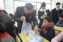 在本次捐贈儀式正式開始之前,還有一個特別溫暖、快樂的互動環(huán)節(jié),60名湘鄉(xiāng)地區(qū)的經(jīng)銷商們,在得知能參與本次愛心活動之后,熱情地準備了書籍、籃球、羽毛球、筆記本、彩畫筆等豐富的文體用品。帶著滿腔的關(guān)愛走進教室,跟孩子們交流互動,贈送禮物?!斑@些物品不算貴重,但卻是孩子們需要的,代表了所有綠之韻愛心志愿者的心愿,希望孩子們知道,有很多人在關(guān)心著他們、牽掛著他們?!眳⑴c活動的經(jīng)銷商代表傅建華說。