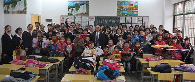 而孩子們也用他們的熱忱回饋著綠之韻的關(guān)愛,給所有捐贈愛心款項的經(jīng)銷商帶上了鮮艷的紅領(lǐng)巾,并認真地表演了排練近一個月的《感恩的心》和詩歌朗誦兩個節(jié)目?!案兄x幫助過我們的人,感謝關(guān)心過我們的人,是你們讓我們茁壯成長,成為學會感恩、熱愛生活的人,我將來也會像叔叔、阿姨們一樣,無私地幫助那些有困難的人?!本栀泝x式上,學生楊楊代表所有受捐學生講話。