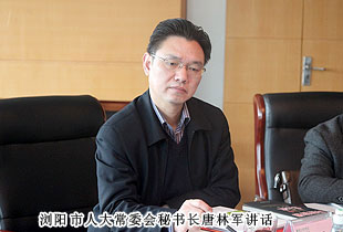 2014年3月11日上午,瀏陽市人大常委會常務副主任孫建科、秘書長唐林軍等一行蒞臨綠之韻集團考察指導工作。長沙市人大代表、綠之韻集團董事長胡國安,總裁助理方彥雄全程陪同。