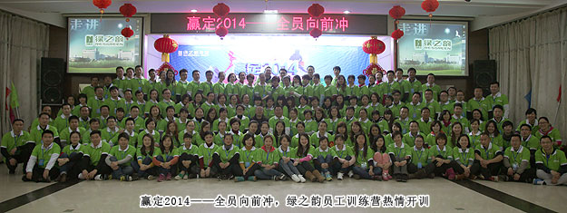 在這個節(jié)日氣氛尚未褪盡的初春時節(jié),為增強員工的團隊凝聚力,提高主動配合意識和協(xié)同能力,促使大家勇于挑戰(zhàn)自我,挖掘潛力,分秒必爭,達成目標,進一步積極、全面和深入地弘揚“厚德載物、目標堅定、有容乃大、低調(diào)實干、勇往直前、厚積薄發(fā)、團隊制勝、堅持到底、整合資源、改變自我”的綠之韻“水文化”,綠之韻集團組織全體員工進行了為期三天兩晚的“贏定2014——全員向前沖”訓練營活動。