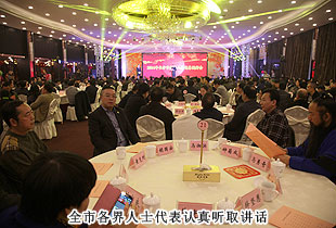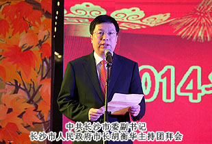 一杯清茶暢敘發(fā)展,務(wù)實節(jié)儉喜迎新春。2014年1月27日,長沙市各界人士迎春團拜會在楓林賓館隆重舉行。中共長沙市委副書記、長沙市人民政府市長胡衡華主持團拜會,長沙市人大常委會主任袁觀清等市委、市人大、市政府、市政協(xié)、市紀委五套班子領(lǐng)導(dǎo)出席。湖南省工商聯(lián)(總商會)常委、長沙市工商聯(lián)(總商會)副主席、綠之韻集團董事長胡國安受邀參會,與全市各界人士代表400多人歡聚一堂,共同辭舊迎新,共話美好未來。