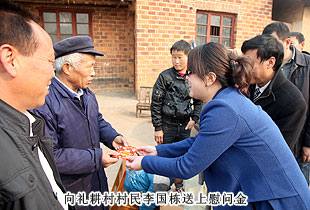 在禮耕村村長李強(qiáng)、黨委書記蘇典順的陪同下,慰問組一行首先來到村民李國棟家。李國棟一家4口人,妻子和兒子、媳婦均有殘疾,家中只有他一個勞動力,生活十分拮據(jù)。當(dāng)李國棟接到慰問小組一行送上的慰問物資和慰問金后感動的淚光閃爍,他激動地說:“我以前聽說過綠之韻,都說綠之韻董事長胡國安是好人,綠之韻有個好團(tuán)隊(duì)。你們這樣照顧我,我太感謝了!”