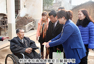 接著,慰問組又來到身患肺癌的李應(yīng)清家,因身患肺癌且腿腳不靈便,他的妻子多年前離家出走,兒子尚在讀書,目前唯有年逾八十的老母親照顧全家。其家庭困難可想而知!李應(yīng)清再三致謝,家中80歲母親更握著綠之韻集團(tuán)董事常務(wù)副總裁勞嘉的手動容的說:“好人?。∧銈兌际呛萌?!”