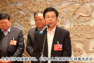 長沙市人大常委會主任袁觀清主持會議并宣布大會開幕。在熱烈的掌聲中,中共長沙市委副書記、長沙市人民政府代市長胡衡華作政府工作報告。胡衡華說,在市委的堅強領(lǐng)導(dǎo)下,全市上下認(rèn)真落實省委、省政府“四化兩型”總戰(zhàn)略和“三量齊升”總要求,大力開展“六個走在前列”大競賽活動,科學(xué)應(yīng)對復(fù)雜嚴(yán)峻的宏觀經(jīng)濟(jì)形勢,著力穩(wěn)增長、調(diào)結(jié)構(gòu)、轉(zhuǎn)方式、保民生,完成了市第十四屆人民代表大會第一次會議確定的目標(biāo)任務(wù)。預(yù)計全市實現(xiàn)地區(qū)生產(chǎn)總值7200億元,增長12%;固定資產(chǎn)投資4600億元,增長20%;財政總收入883.89億元,增長19.54%,其中公共財政預(yù)算收入536.63億元,增長23.8%;規(guī)模工業(yè)增加值2600億元,增長14%;社會消費品零售總額2800億元,增長14%;城鎮(zhèn)登記失業(yè)率為2.89%;居民消費價格指數(shù)為102.8;全面完成節(jié)能減排任務(wù)。胡衡華指出,綜合考慮各種因素,2014年經(jīng)濟(jì)社會發(fā)展的主要預(yù)期目標(biāo)是:地區(qū)生產(chǎn)總值增長11.5%;財政總收入增長15%,公共財政預(yù)算收入增長13%;固定資產(chǎn)投資增長18%;規(guī)模工業(yè)增加值增長13%;社會消費品零售總額增長14%左右;單位地區(qū)生產(chǎn)總值綜合能耗下降3%,化學(xué)需氧量、二氧化硫、氨氮、氮氧化物等減排指標(biāo)完成省下達(dá)任務(wù);城鎮(zhèn)登記失業(yè)率控制在4%以內(nèi);人口自然增長率在7.5%以內(nèi);居民消費價格指數(shù)控制在103.5左右。胡衡華強調(diào),圍繞上述目標(biāo)任務(wù),2014年要著重抓好七個方面的工作:突出轉(zhuǎn)型升級,推進(jìn)新型工業(yè)化;突出發(fā)展服務(wù)業(yè),提升競爭優(yōu)勢;突出建管并重,打造品質(zhì)城市;突出城鄉(xiāng)一體,推進(jìn)新型城鎮(zhèn)化;突出兩型建設(shè),加快引領(lǐng)發(fā)展;突出公共服務(wù),發(fā)展社會事業(yè);突出改善民生,促進(jìn)社會和諧。胡衡華最后說,新的起點,新形勢、新任務(wù)催人奮進(jìn)。讓我們在市委的正確領(lǐng)導(dǎo)下,按照“六個走在前列”的要求,求真務(wù)實,改革創(chuàng)新,為率先建成“三市”、強力實施“三倍”、加快現(xiàn)代化進(jìn)程而努力前行!