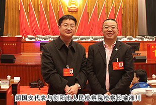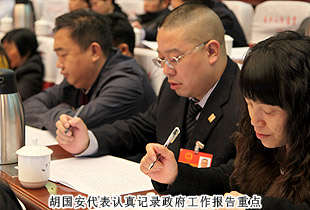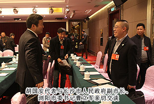 開幕式后,中共長沙市委副書記、長沙市人民政府市長胡衡華一行來到各地區(qū)代表團(tuán),與出席市十四屆人大二次會議的代表們一起審議政府工作報告,聽取代表們的建議和意見。在瀏陽市代表團(tuán)分組審議座談會上,就2014年長沙經(jīng)濟(jì)社會如何保持平穩(wěn)快速發(fā)展,代表們紛紛獻(xiàn)計獻(xiàn)策。中共長沙市委副書記、長沙市人民政府市長胡衡華,長沙市人大常委會副主任黃佳惠,長沙市人民政府副市長、瀏陽市委書記曹立軍等市領(lǐng)導(dǎo)成員仔細(xì)傾聽每位代表發(fā)言,認(rèn)真記錄,還不時一起探討。胡國安代表在審議時針對胡市長在講話中提到的“全力打造瀏陽河生態(tài)經(jīng)濟(jì)示范區(qū),把瀏陽經(jīng)開區(qū)培育成新的千億園區(qū)”和“加快移動電子商務(wù)基地建設(shè),促進(jìn)電子商務(wù)加速發(fā)展,爭創(chuàng)國家電子商務(wù)示范基地”的兩個觀點,他結(jié)合園區(qū)、綠之韻集團(tuán)實際,詳盡闡述了綠之韻集團(tuán)的生態(tài)經(jīng)濟(jì)發(fā)展思路,以及在瀏陽河與撈刀河畔建立生態(tài)休閑區(qū)、建設(shè)五星級生態(tài)酒店和綠之韻連鎖酒店、發(fā)展湖南黑茶產(chǎn)業(yè)、打造藍(lán)莓產(chǎn)業(yè)鏈等未來八大發(fā)展規(guī)劃。胡衡華、黃佳惠、曹立軍等省市領(lǐng)導(dǎo)認(rèn)真聆聽胡國安代表的發(fā)言,邊聽邊記,邊記邊問,對發(fā)言中提及的思路和做法表示高度的肯定。由于胡國安代表長期扎根基層,服務(wù)群眾,盡職履責(zé),深入調(diào)研,連續(xù)兩屆擔(dān)任人大代表,所提交的議案均緊扣社會熱點和難點,普遍反映比較強烈,長沙市人民政府副市長、瀏陽市委書記曹立軍對此印象十分深刻。分組審議后,曹立軍副市長立軍同胡國安代表進(jìn)行了面對面的親切交談。他向胡國安代表不久前獲評“長沙市優(yōu)秀人大代表典型風(fēng)采人物”表示祝賀,希望胡國安代表進(jìn)一步發(fā)揮出人大代表參與決策、監(jiān)督協(xié)助、橋梁紐帶的作用,為長沙全面推進(jìn)“六個走在前列”、率先建成“三市”、強力實施“三倍”、加快現(xiàn)代化進(jìn)程,作出更大的貢獻(xiàn)!