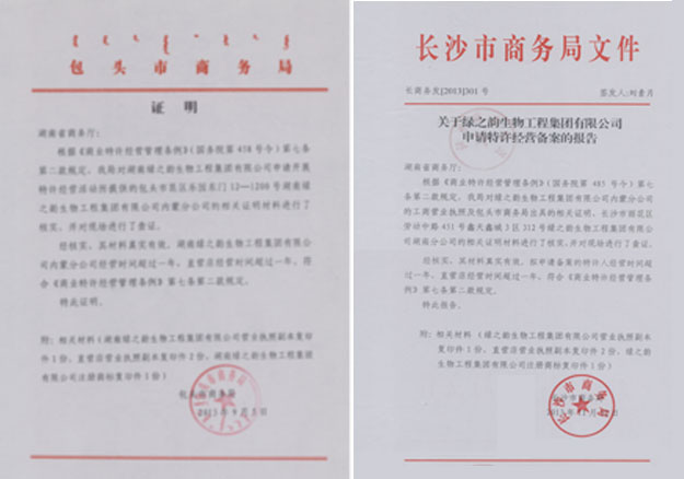 根據(jù)國家商務部定義,特許經(jīng)營(Franchise)是指特許經(jīng)營權擁有者以合同約定的形式,允許被特許經(jīng)營者有償使用其名稱、商標、專有技術、產(chǎn)品及運作管理經(jīng)驗等從事經(jīng)營活動的商業(yè)經(jīng)營模式。為進一步貫徹落實《商業(yè)特許經(jīng)營管理條例》,加強商業(yè)特許經(jīng)營管理,經(jīng)商務部領導批準,2013年2月特別成立了由流通發(fā)展司、條法司、市場秩序司、財務司、服貿司、電子商務司6個單位組成的商業(yè)特許經(jīng)營管理辦公室。綠之韻集團作為跨省特許經(jīng)營類企業(yè)于2013年5月正式向國家商務部商業(yè)特許經(jīng)營管理辦公室提交了特許備案的申請后,并提交了相當詳實的企業(yè)資料。在近半年的時間里,商務部商業(yè)特許經(jīng)營管理辦公室根據(jù)綠之韻集團提交的審核資料,從綠之韻集團的企業(yè)資質、特許約定和合作要求的合法性;從綠之韻集團知名度、美譽度和信譽度;從綠之韻集團產(chǎn)品、專有技術、物流配送、培訓指導等總部服務能力等等,進行了全面細致的考核,最終認定綠之韻集團具備相當完善的特許經(jīng)營能力,符合國家商務部下達的《商業(yè)特許經(jīng)營管理條例》的要求。12月26日,綠之韻集團正式獲得國家商務部的企業(yè)特許經(jīng)營備案,備案登記號為:0430100711300045。