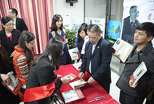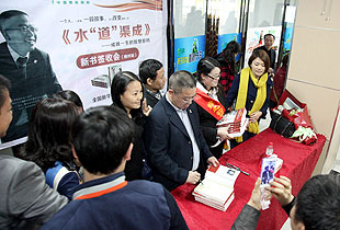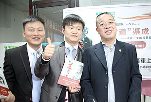 2013年11月28日,胡國(guó)安董事長(zhǎng)參加完由湖南省發(fā)改委、湖南省商務(wù)廳、郴州、衡陽、永州三市人民政府主辦的“2013年首屆湘南國(guó)際承接產(chǎn)業(yè)轉(zhuǎn)移投資貿(mào)易洽談會(huì)”之后,不顧舟車勞頓,不辭辛勞,親赴湖南郴州市場(chǎng)一線考察指導(dǎo)工作,并應(yīng)邀參與最新力作《水道渠成》簽售活動(dòng)。