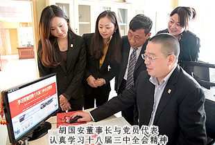 黨的十八屆三中全會勝利閉幕后,綠之韻集團(tuán)黨總支部、團(tuán)支部迅速行動起來,認(rèn)真學(xué)習(xí)、理解、領(lǐng)會和實(shí)踐“十八屆三中全會”精神,在集團(tuán)公司迅速掀起學(xué)習(xí)貫徹““十八屆三中全會”的熱潮。