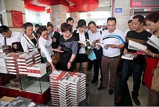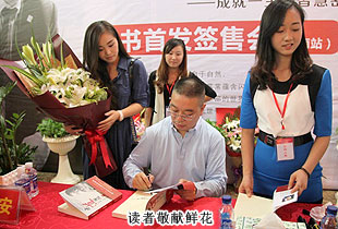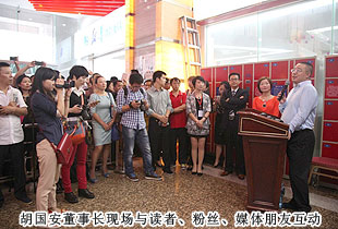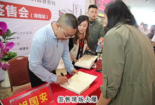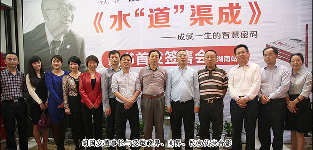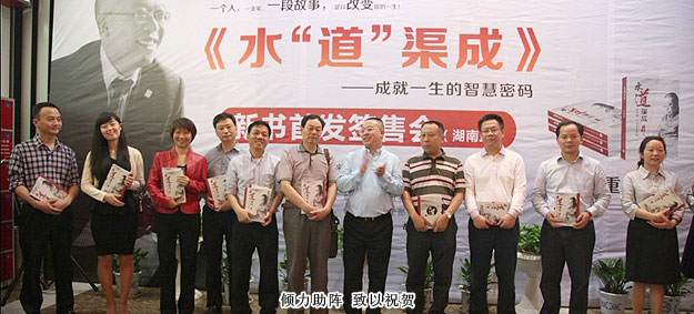 2013年10月8日下午14點,董事長胡國安先生來到湖南長沙定王臺新華書店參加《水“道”渠成》首發(fā)儀式暨讀者簽售見面會,幾十位政界、商界、校友、中國商務出版社代表蒞臨圖書簽售現(xiàn)場傾力助陣,以致祝賀。簽售現(xiàn)場氣氛十分火爆,500多名讀者、粉絲慕名而來,很早就排起了長龍,爭相一睹“水文化”之集大成者董事長胡國安先生的風采,不到兩個小時近千冊《水“道”渠成》銷售一空,許多后來的讀者、粉絲沒有買到新書。