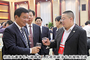 中共湖南省委書(shū)記、省人大常委會(huì)主任徐守盛對(duì)本次大會(huì)的召開(kāi)高度重視。他在賀信中說(shuō),廣大湘商是湖南彌足珍貴的一張亮麗名片。當(dāng)前,湖南正處于全面深化改革開(kāi)放和全面建成小康社會(huì)的關(guān)鍵時(shí)期,我們將認(rèn)真貫徹落實(shí)黨的十八大精神,以提高經(jīng)濟(jì)增長(zhǎng)質(zhì)量和效益為中心,大力促進(jìn)“三量齊升”,全面推進(jìn)“四化兩型”、“四個(gè)湖南”建設(shè),加快實(shí)現(xiàn)湖南的“小康夢(mèng)”、“兩型夢(mèng)”、“崛起夢(mèng)”,奮力譜寫(xiě)中國(guó)夢(mèng)的湖南篇章。相信一個(gè)持續(xù)健康發(fā)展、加速開(kāi)放崛起的湖南,必將為包括湘商在內(nèi)的海內(nèi)外投資者創(chuàng)造更多機(jī)會(huì),帶來(lái)豐厚回報(bào)。湖南將認(rèn)真落實(shí)中央大政方針和部署要求,一如既往地支持湘商創(chuàng)新創(chuàng)業(yè)、發(fā)展壯大。希望廣大湘商繼續(xù)為家鄉(xiāng)的建設(shè)發(fā)展獻(xiàn)計(jì)出力,帶動(dòng)更多的海內(nèi)外客商來(lái)湘投資興業(yè),帶動(dòng)更多的優(yōu)質(zhì)資源要素聚集湖南,實(shí)現(xiàn)互利共贏,成就事業(yè)夢(mèng)想,共創(chuàng)美好未來(lái)。