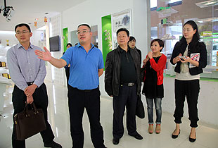 調(diào)研過程中,考察組一行首先參觀了綠之韻集團總部及產(chǎn)品展示廳。胡國安董事長就公司產(chǎn)品、產(chǎn)學(xué)研合作、產(chǎn)業(yè)富民和未來發(fā)展等相關(guān)情況向各位領(lǐng)導(dǎo)進行了詳細介紹:“綠之韻推出的所有產(chǎn)品都緊緊圍繞綠色、天然、健康和養(yǎng)生理念,以產(chǎn)、學(xué)、研結(jié)合為模式先后與中南大學(xué)、湖南省中醫(yī)藥大學(xué)、南京大學(xué)等國家重點大學(xué)達成合作,同時聚集了中國工程院院士周宏灝,中國螺旋藻之父曾昭琪、張媛貞教授等大批專家教授的產(chǎn)品科研隊伍。為確保產(chǎn)品品質(zhì),綠之韻以“廣東省廣州市護膚品生產(chǎn)基地、湖南長沙國家生物產(chǎn)業(yè)園保健生產(chǎn)基地、江蘇天目湖微藻研發(fā)生產(chǎn)基地、紫錐菊GAP規(guī)范化種植基地、綠之韻湖南益陽中藥材基地”五大生產(chǎn)基地為依靠,從原料、研發(fā)、生產(chǎn)和銷售等環(huán)節(jié),著力打造綠之韻‘全產(chǎn)業(yè)鏈條’的產(chǎn)業(yè)結(jié)構(gòu)”??疾旖M一行對綠之韻集團經(jīng)營理念和發(fā)展思路給予了高度肯定和贊許。