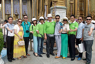 2013年 05月23—28日,綠之韻營銷精英歡歌聚首、激情四溢,裹挾著快樂與榮耀共同度過了泰國6日精彩圓夢之旅。23日,大家由專業(yè)領(lǐng)隊帶領(lǐng)乘坐國際航班直飛曼谷,接受泰國少女獻花,在泰國友人的熱情好客與浪漫氣質(zhì)的包圍下,綠之韻營銷精英2013泰國快樂之旅正式啟程了!