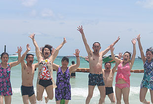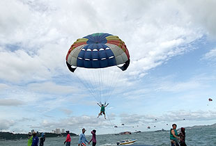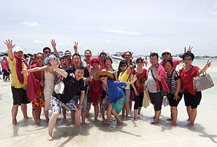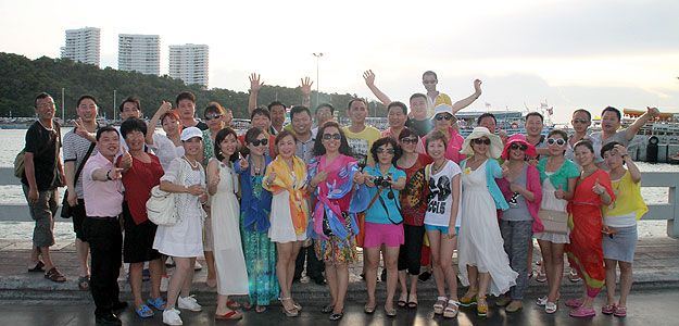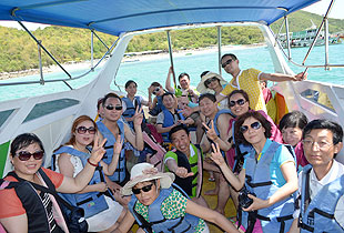 白天的芭堤雅度假區(qū)的沙灘上有各種各樣的水上活動,因為終年陽光普照,溫暖的海水在陽光閃爍璀璨,所以各項水上活動應有盡有。小型帆船、滑浪風帆、滑水、淺水潛游、深水潛泳、深海釣魚等等,不但一切器材及時供應,并且還有專業(yè)的教練手把手教你。如果嫌在海灘的活動仍未能盡興,還可以乘船出海,前往各個海島。此次綠之韻浪漫泰國之旅,綠之韻的精英們在三個不同的島嶼之間穿梭,感受到了這個有著“東方夏威夷”美譽的地方,確實有著非同凡響的熱度和美麗。一望無際、清澈的散發(fā)著寶石藍光芒的海,岸邊的椰樹搖曳,棟棟西洋、泰式建筑掩映其間——我們讓微微帶咸的海風柔柔的撫摩著臉,海水輕輕地、輕輕地沖上沙灘上又退去??粗矍安┐蟮暮!⒙犞鴲偠臐?,大家無不贊嘆這個熱帶風情十足、令人流連忘返的地方。
